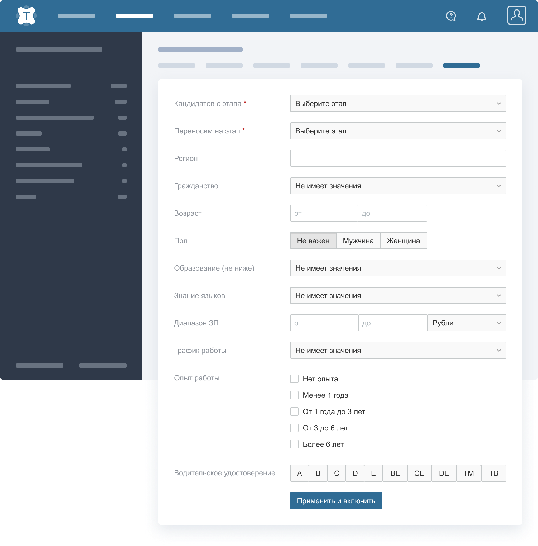— выстраивают четкий бизнес-процесс подбора, в этом им помогают создание своих этапов подбора, автоматический разбор откликов, импорт в СRM новых резюме из разных источников, добавление меток;